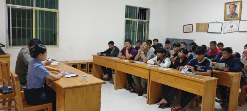 在帕蚌村村委会广场和劈石村村民活动中心,检察干警通过悬挂宣传横幅、发放图文并茂的宣传手册等多种形式,面对面向村民普及与当地息息相关的法律知识,重点围绕预防范跨境犯罪、抵制毒品危害、警示酒后驾驶、保护未成年人免受性侵害等内容进行精准普法,选取紧贴生活实际的典型案例,通过以案释法的方式深入浅出地向群众讲解法律规定,将抽象的法律法规转化为百姓听得懂、用得上的“乡音土话”,积极引导群众运用法律武器维护自身合法权益。